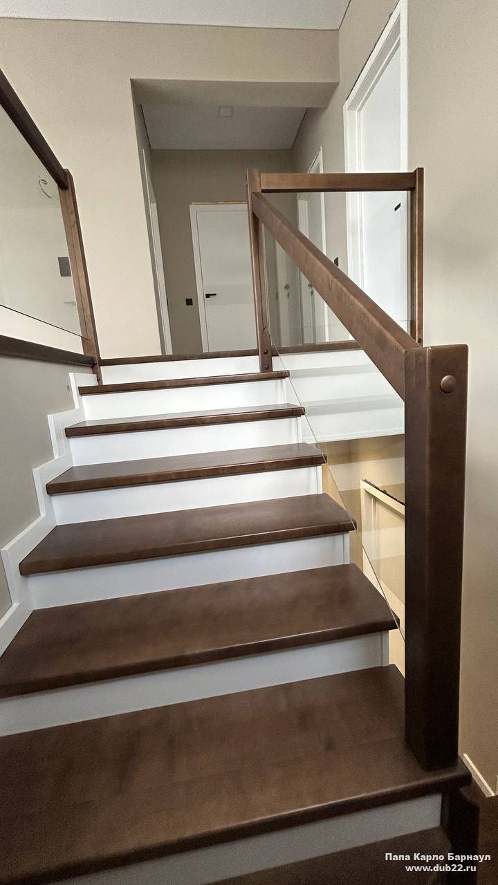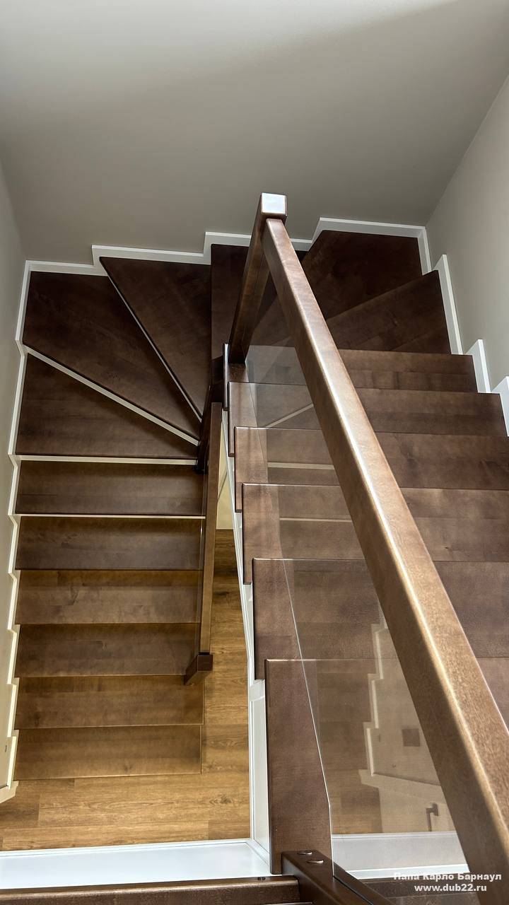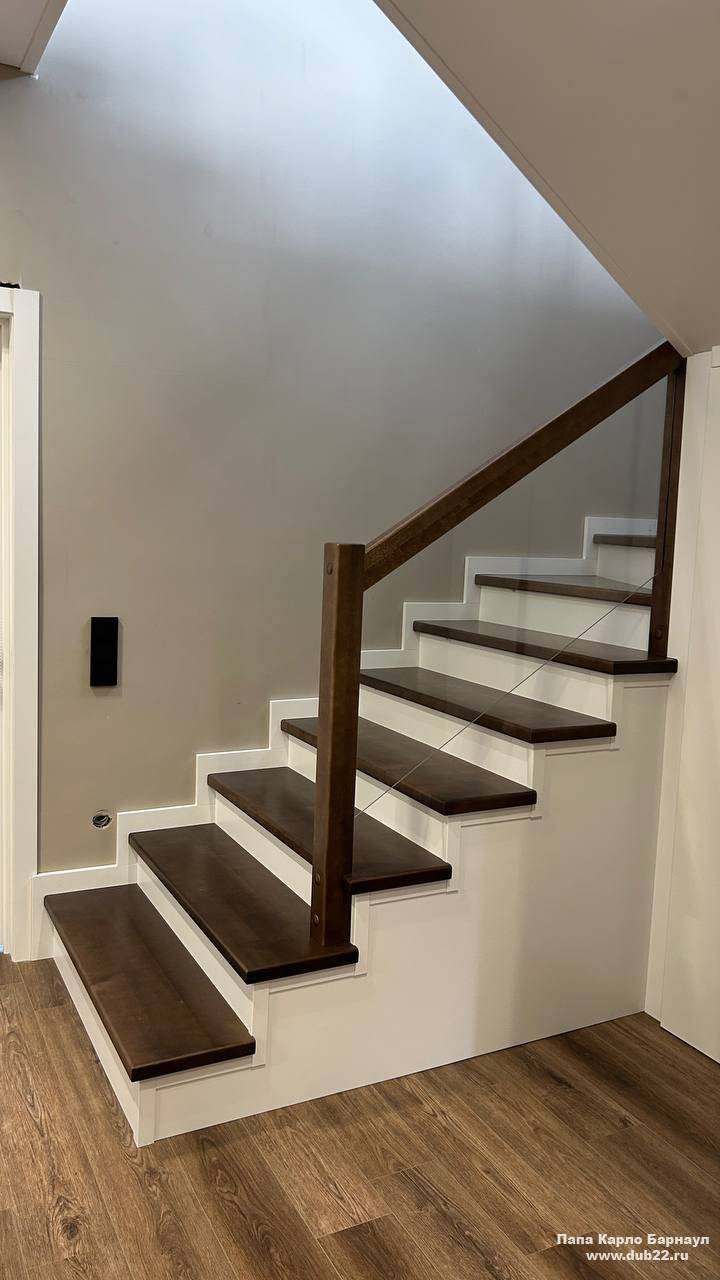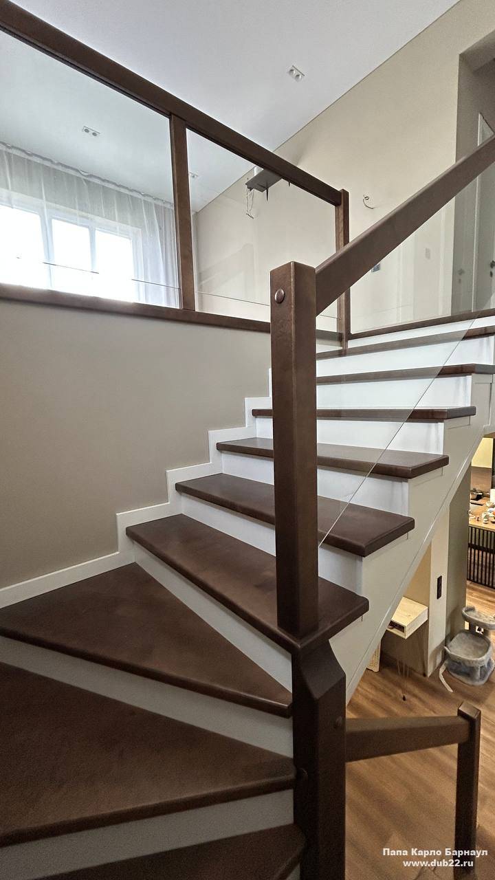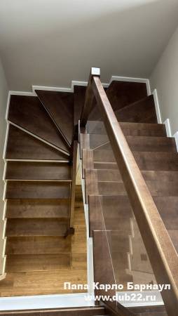 Облицовка лестницы деревом в ЖК Палитра