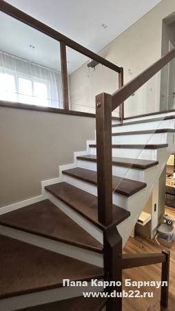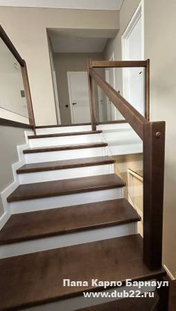Здесь мастера компании "Папа Карло" произвели отделку бетонной лестницы в коттедже в ЖК "Палитра" г. Барнаул. Оформили подлестничное пространство в соответствии с дизайн-проектом заказчика.