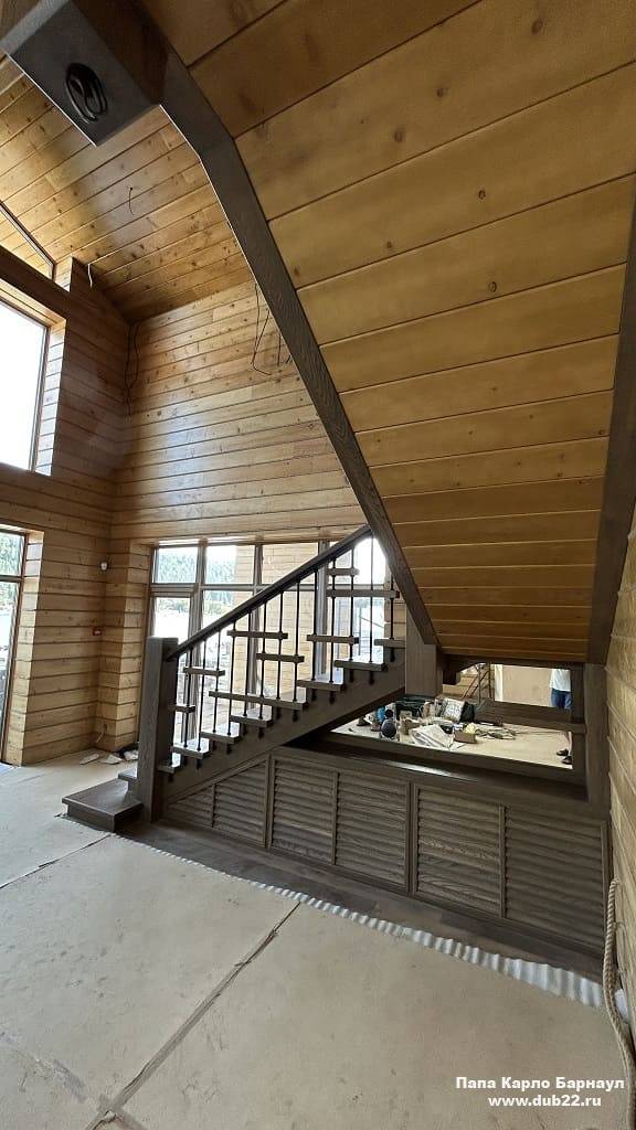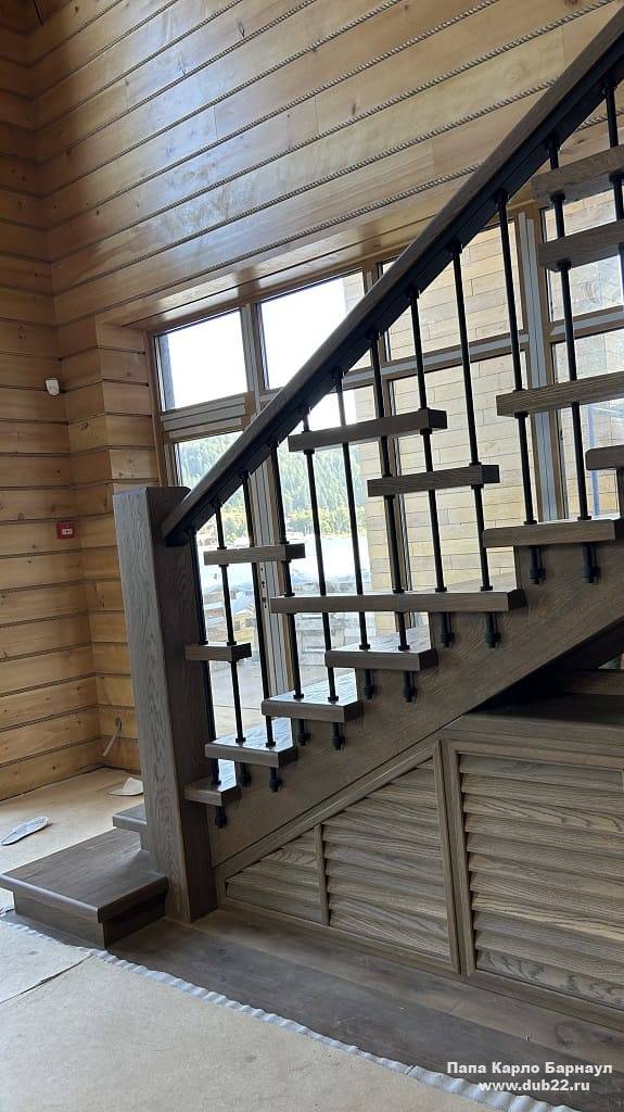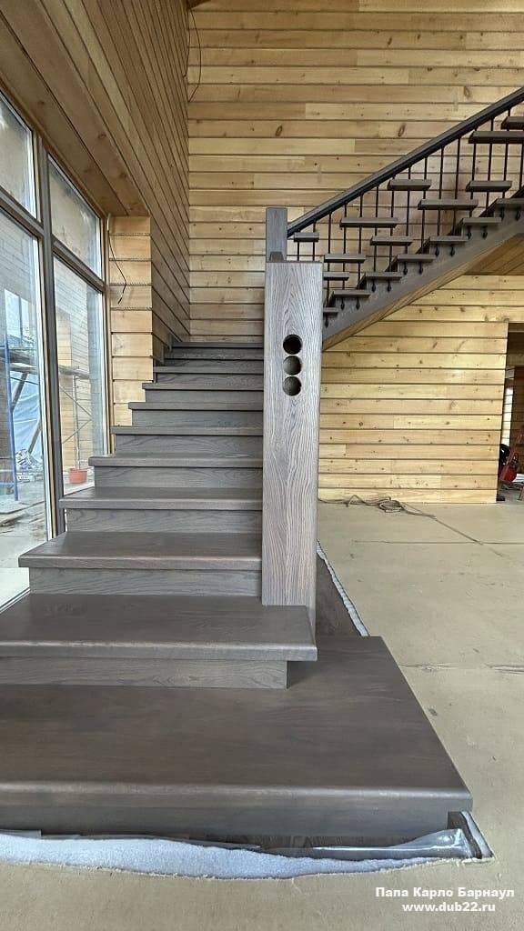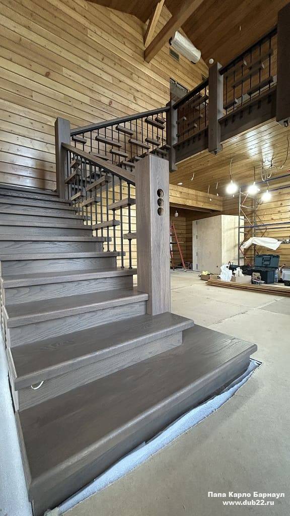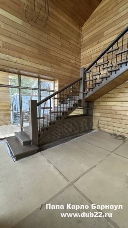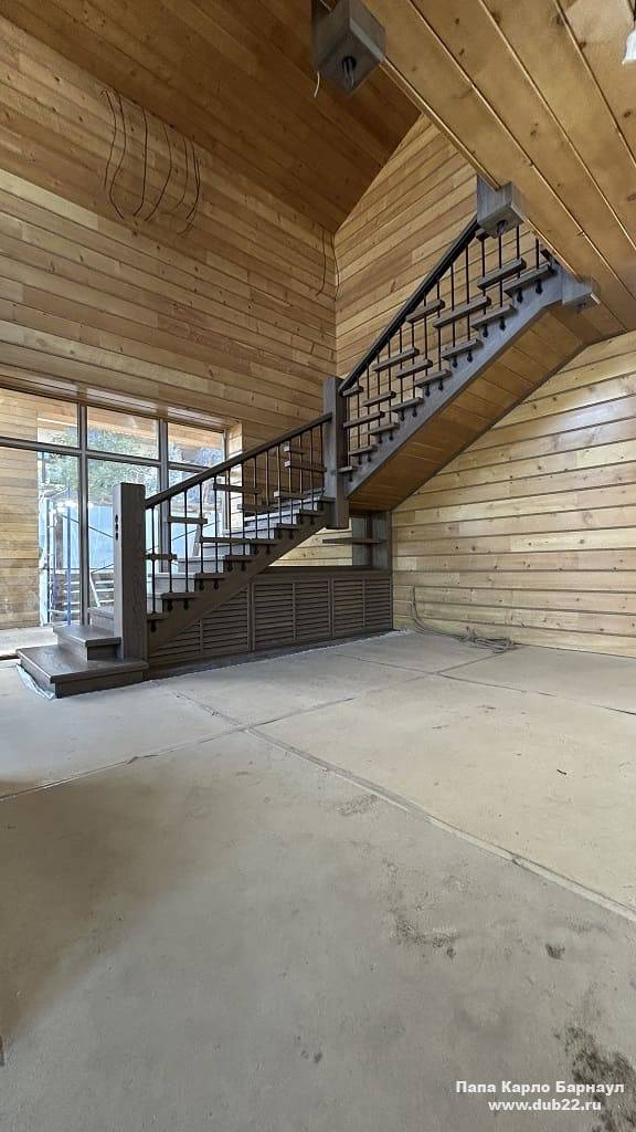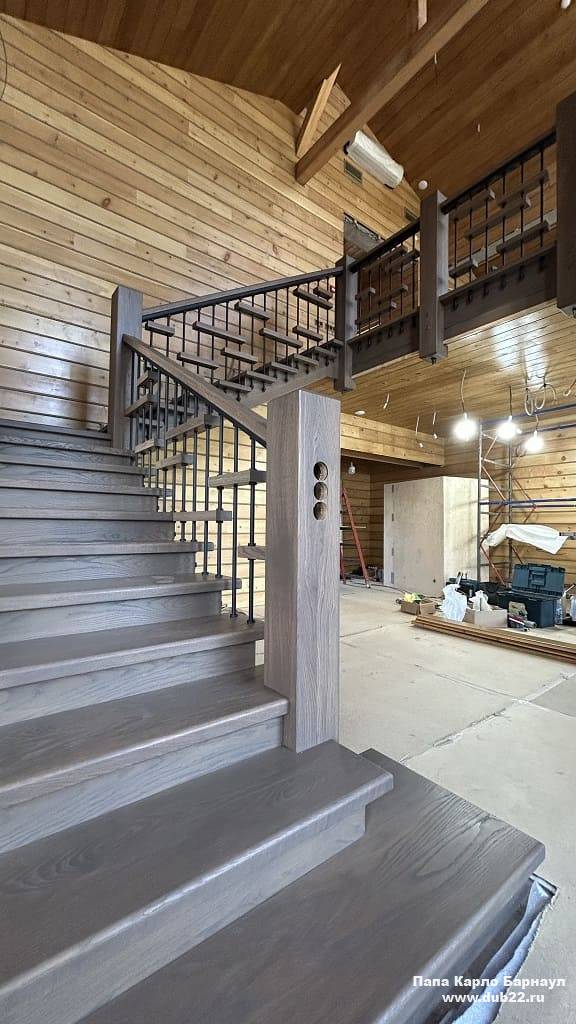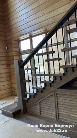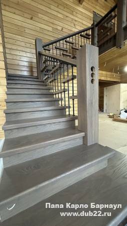 Изготовили вот такую брутальную лестницу с мужским характером из массива дуба на заказ по индивидуальному проекту дизайнера-архитектора Романа Петинцева (г. Москва). Доставили и установили в банном комплексе на базе отдыха «Эвалар» на берегу Телецкого озера.