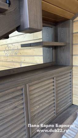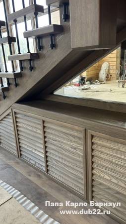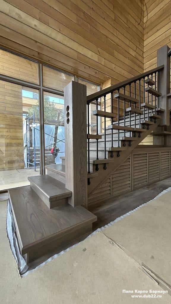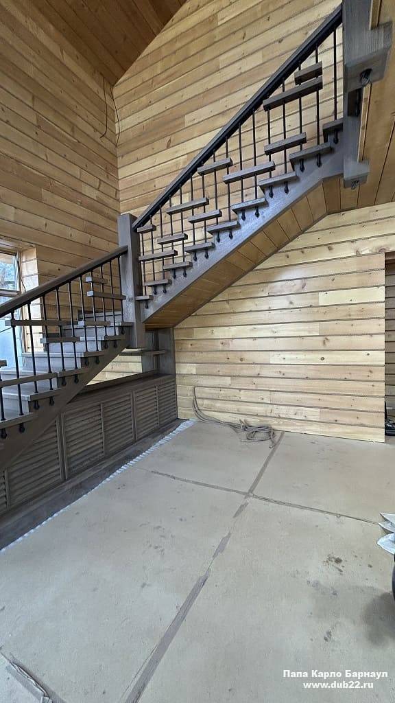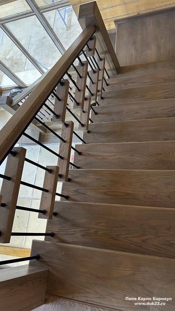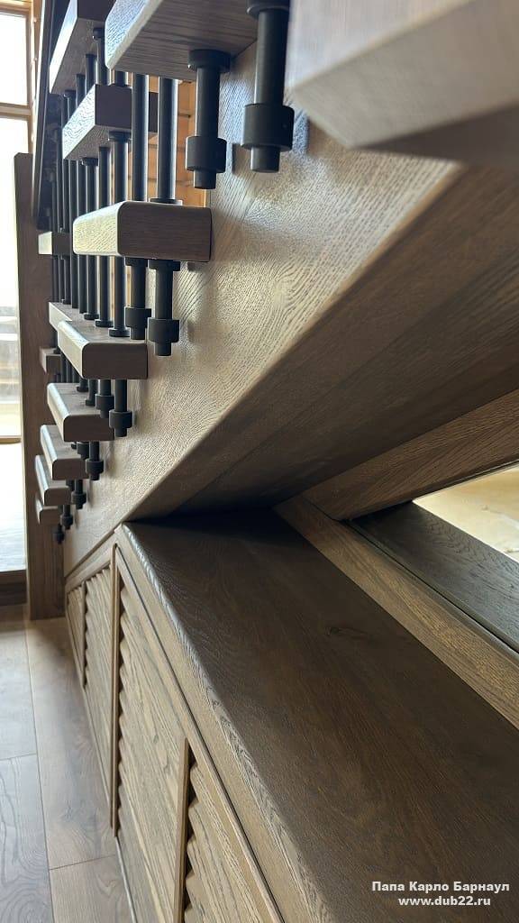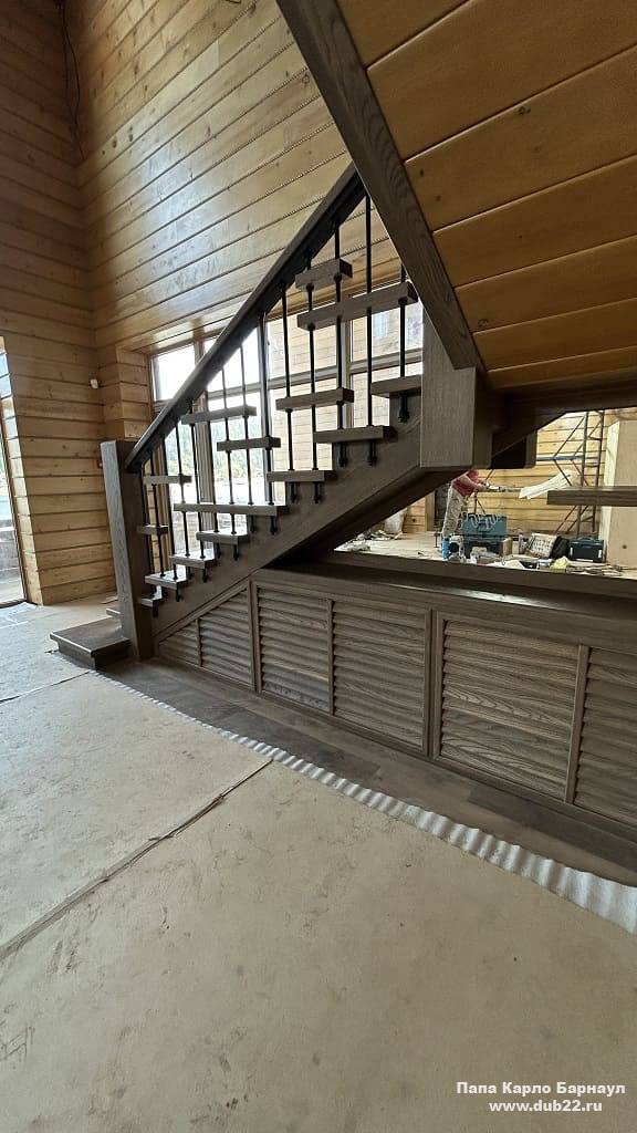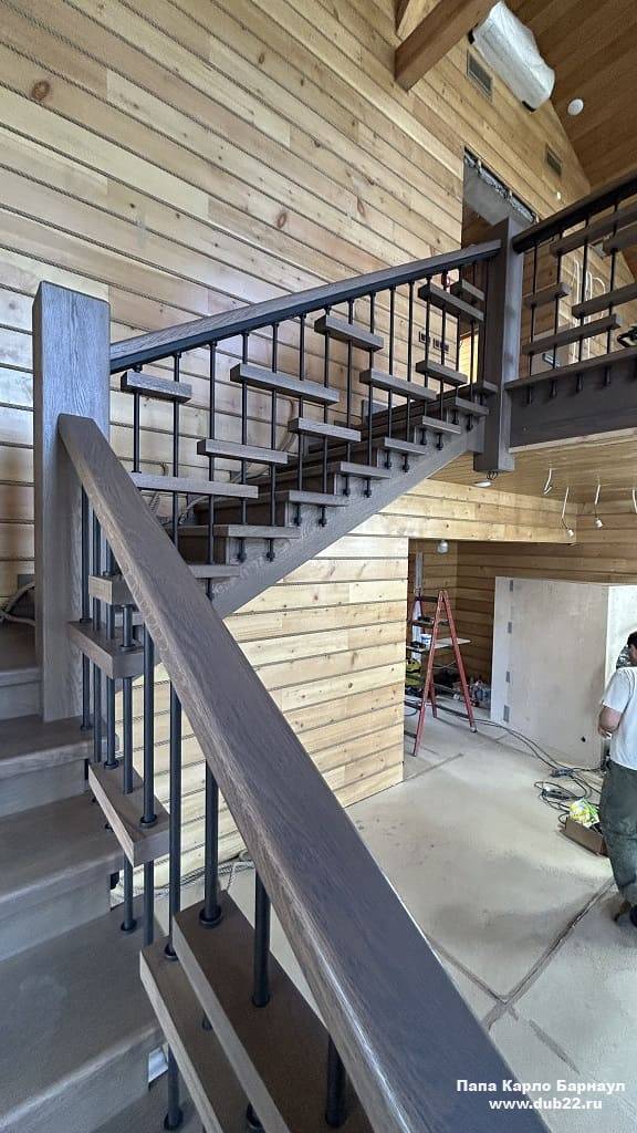 Изготовили вот такую брутальную лестницу с мужским характером из массива дуба на заказ по индивидуальному проекту дизайнера-архитектора Романа Петинцева (г. Москва). Доставили и установили в банном комплексе на базе отдыха «Эвалар» на берегу Телецкого озера.