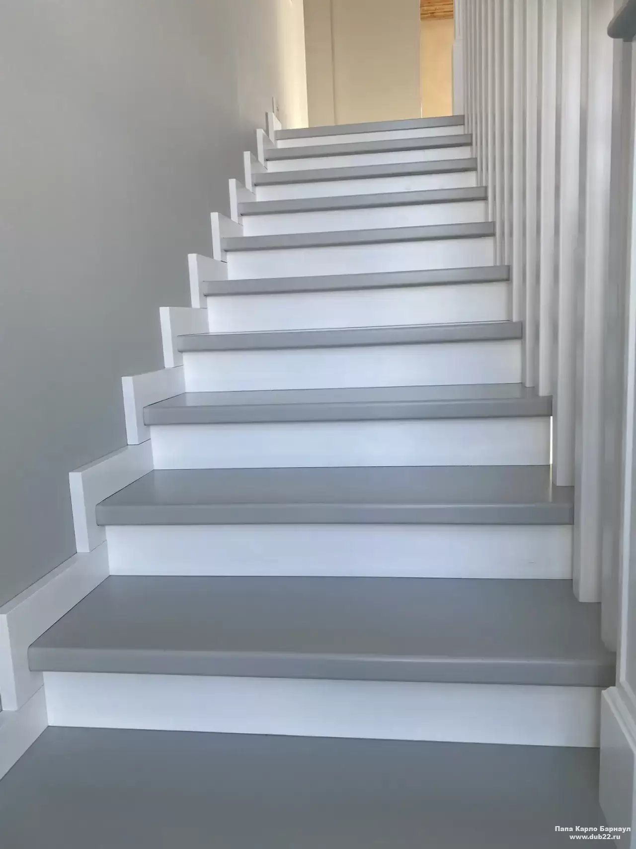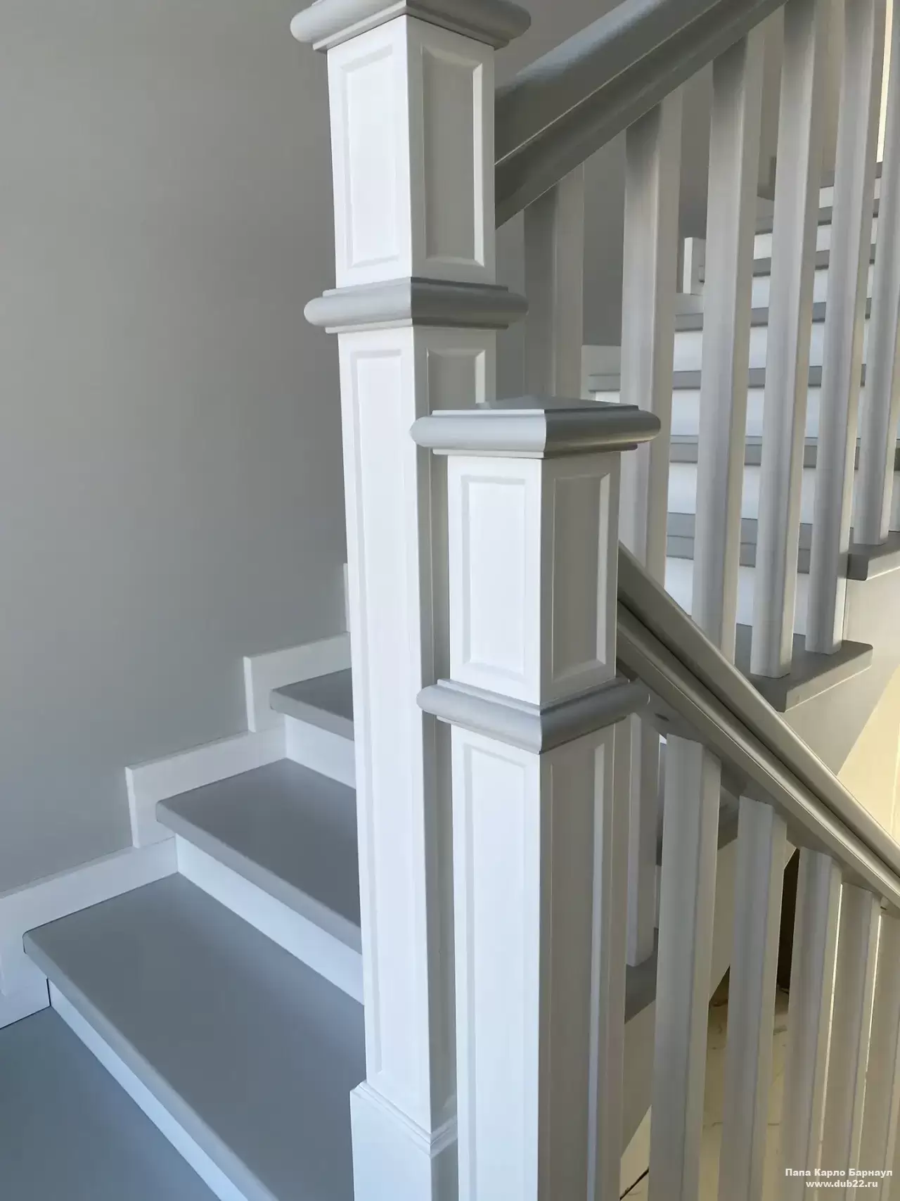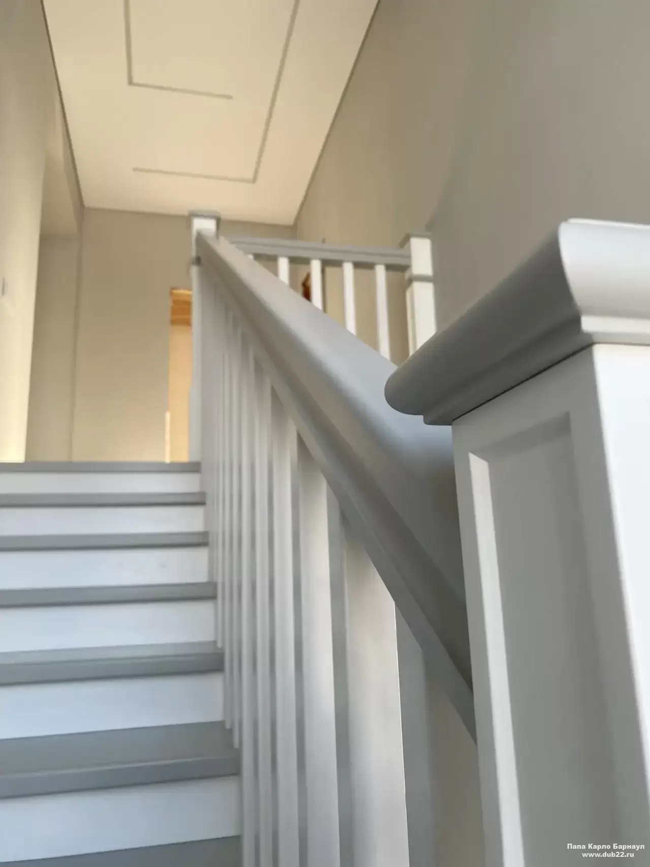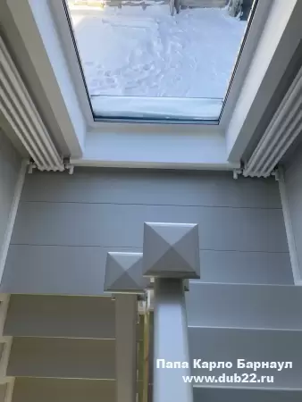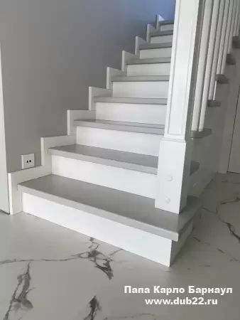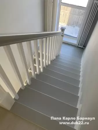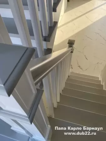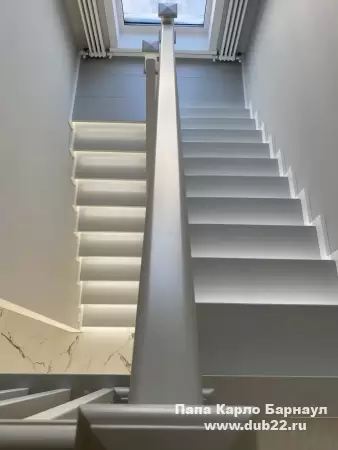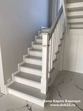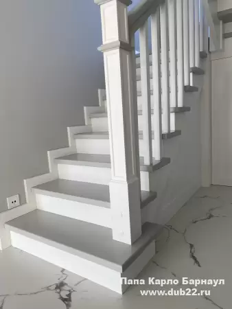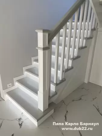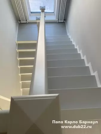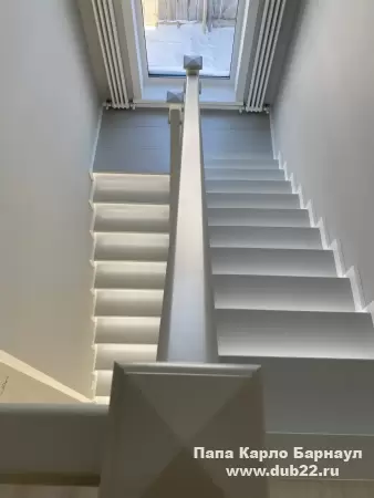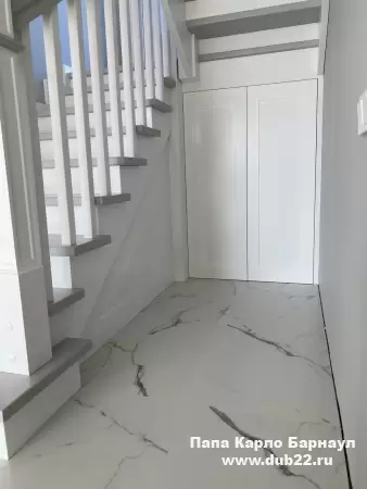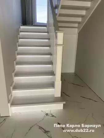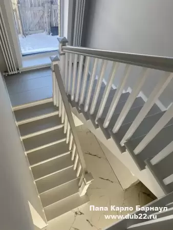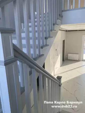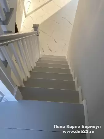 Интерьерная лестница из массива березы в двухцветном исполнении "под эмаль" была изготовлена мастерами компании PAPACARLO, доставлена и установлена в коттедже в г. Камень-на-Оби 18 января 2026 года.