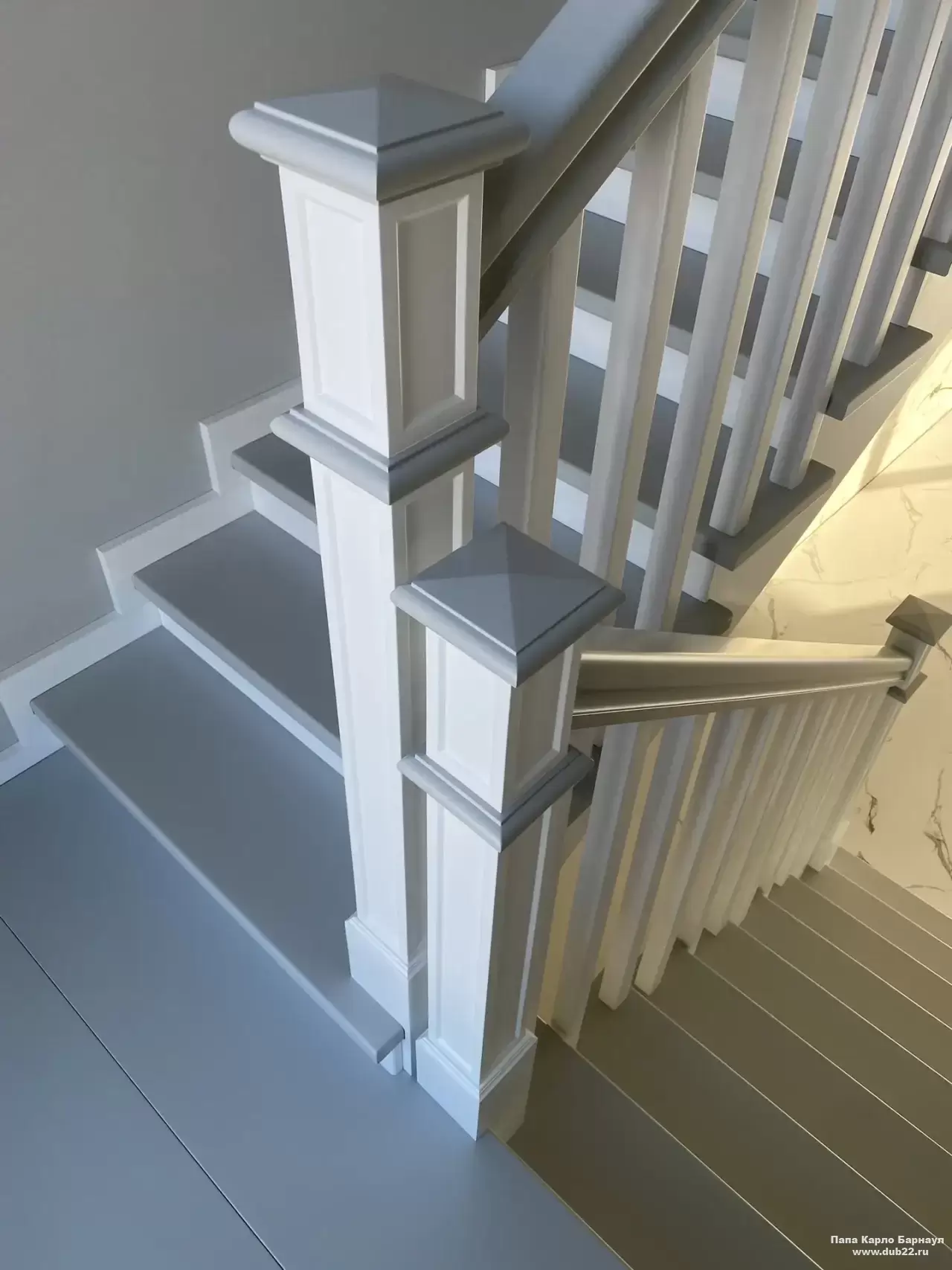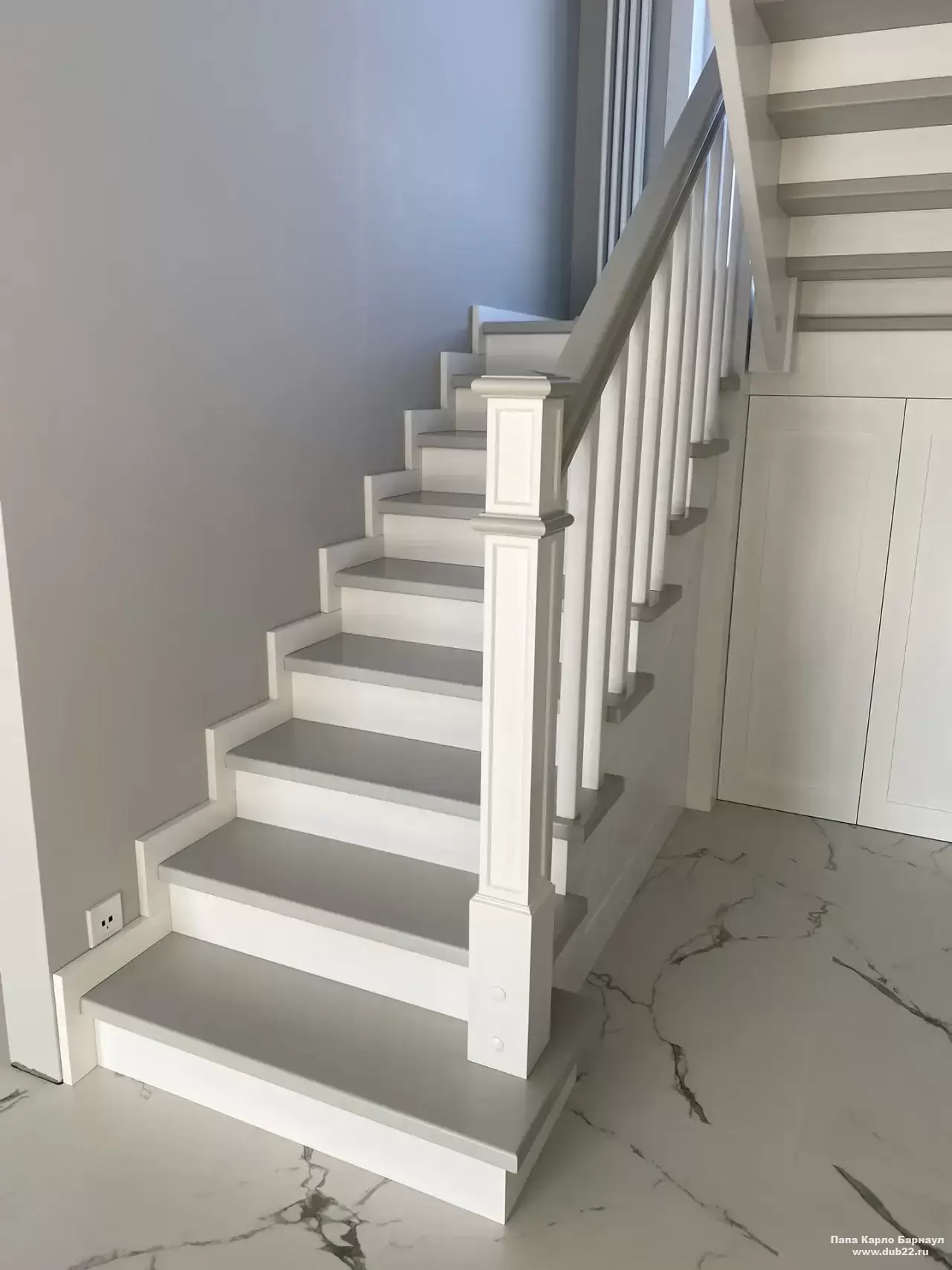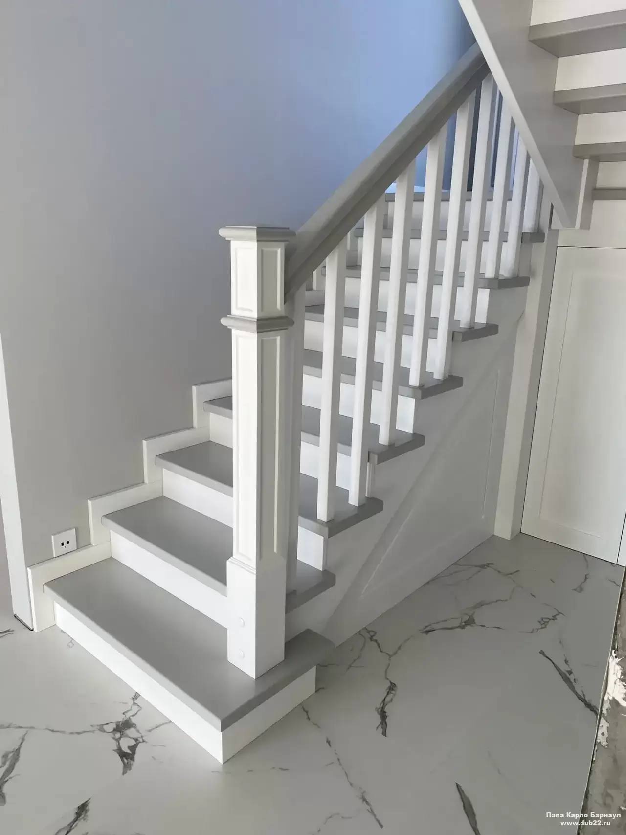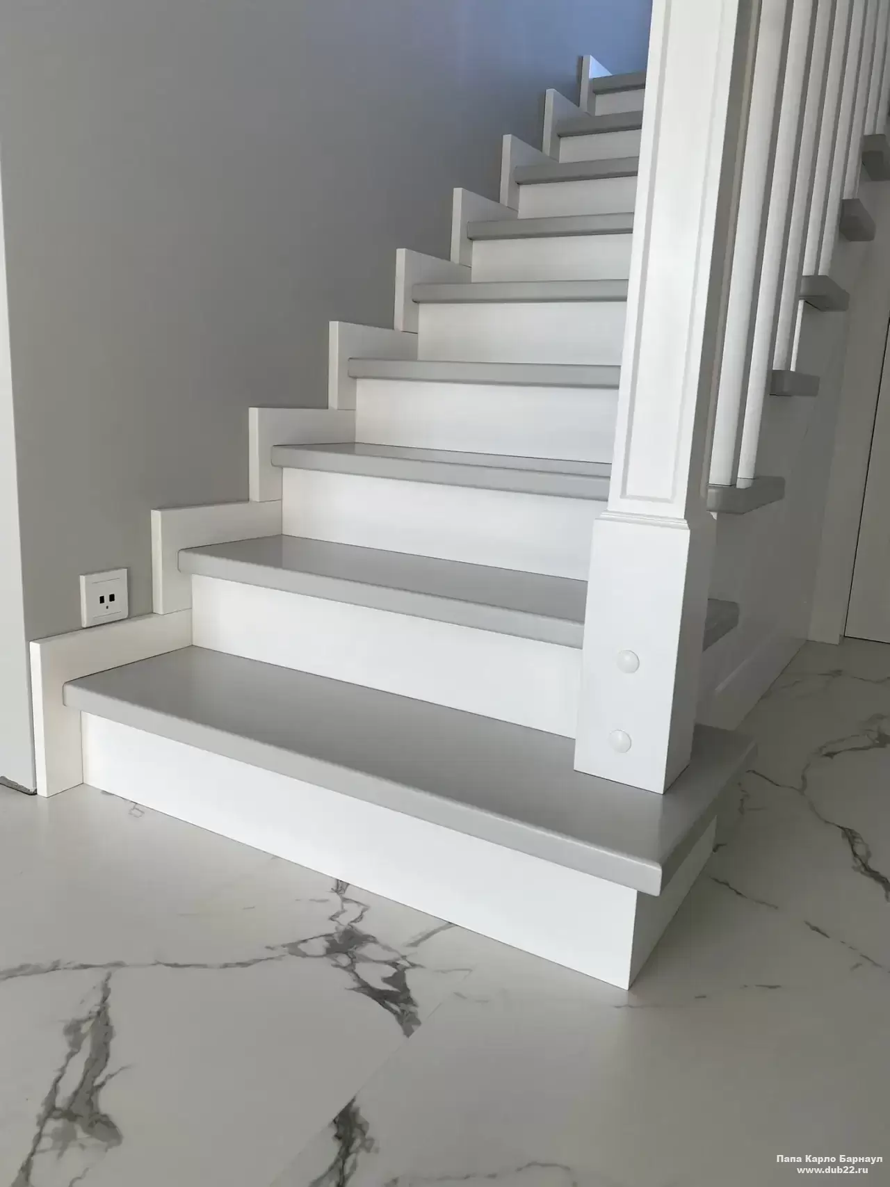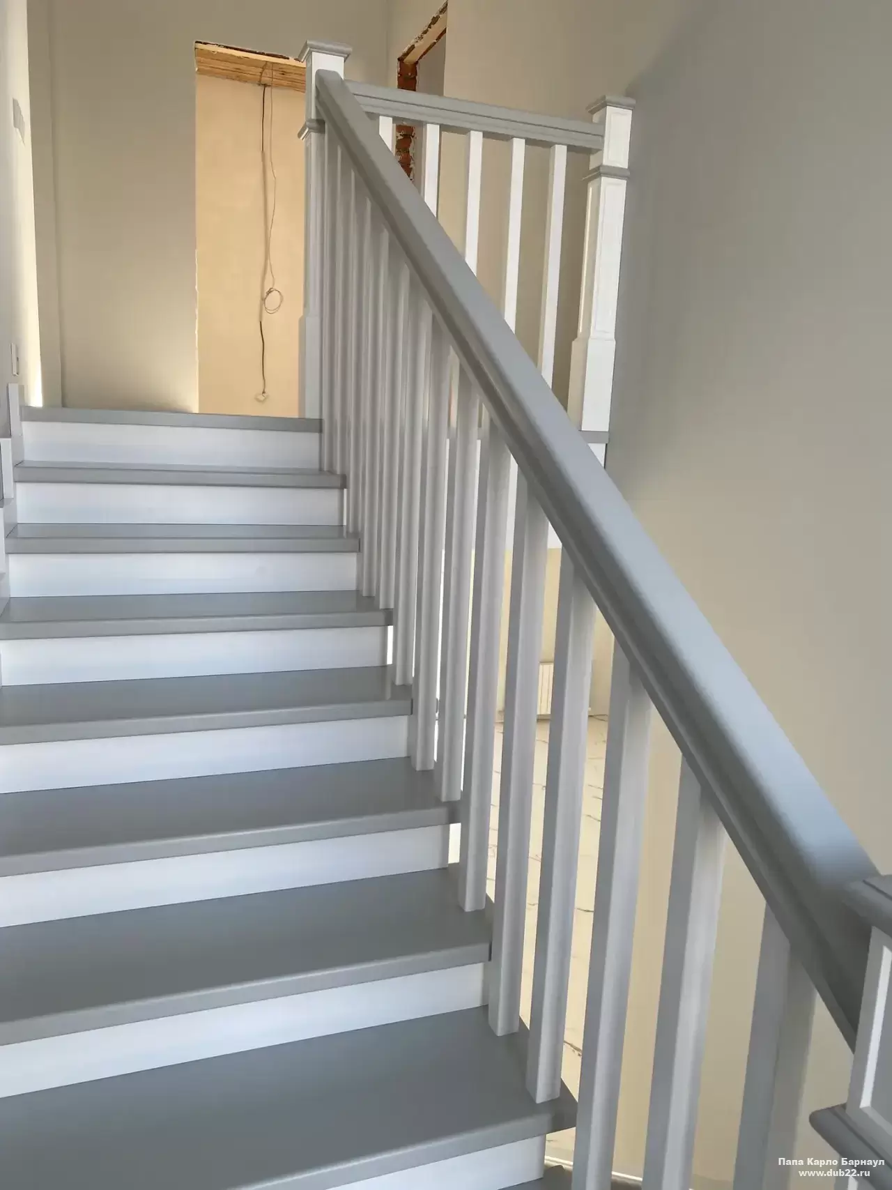 Интерьерная лестница из массива березы в двухцветном исполнении "под эмаль" была изготовлена мастерами компании PAPACARLO, доставлена и установлена в коттедже в г. Камень-на-Оби 18 января 2026 года.