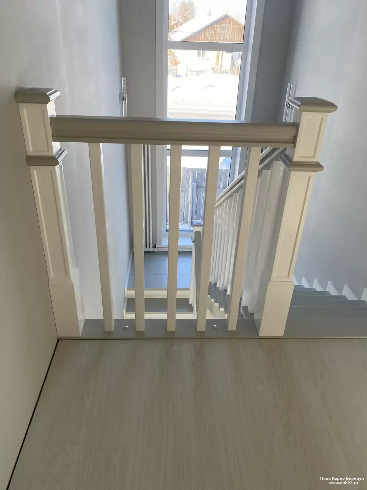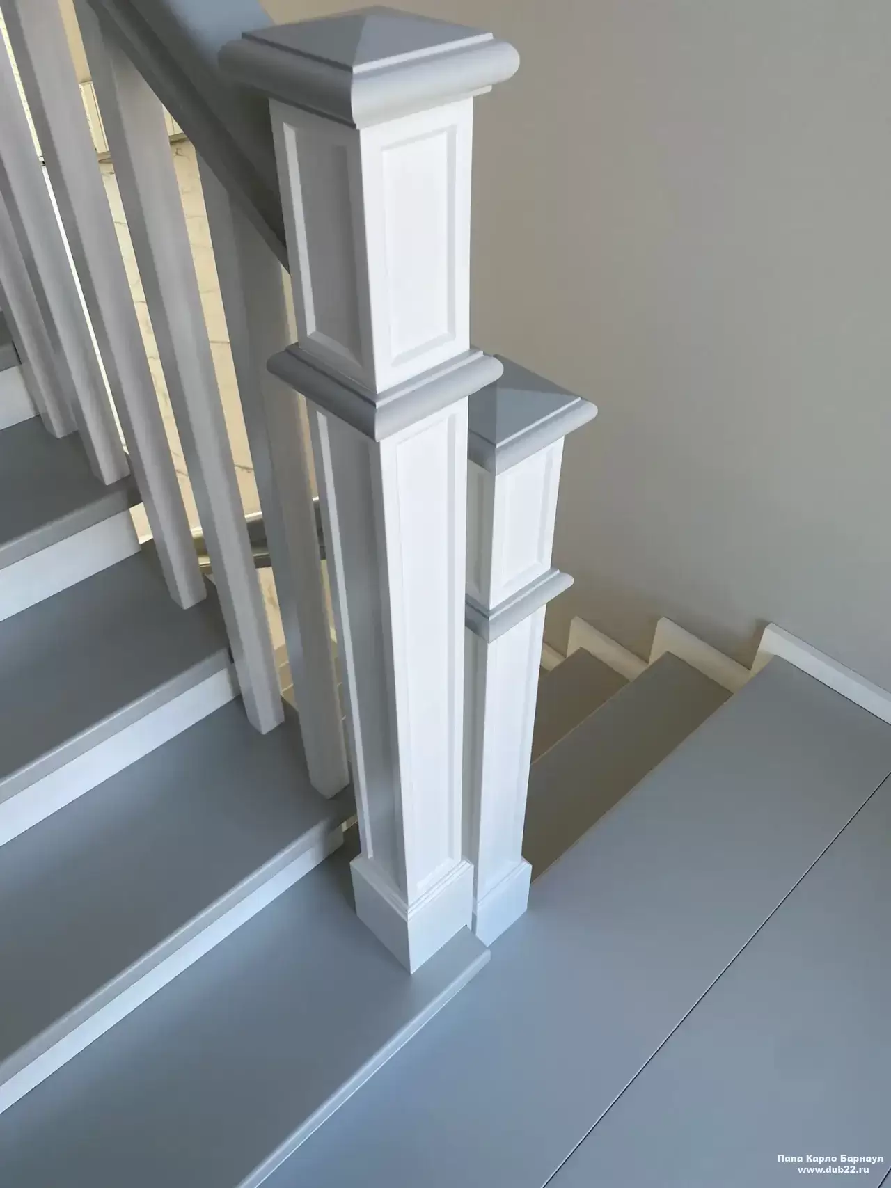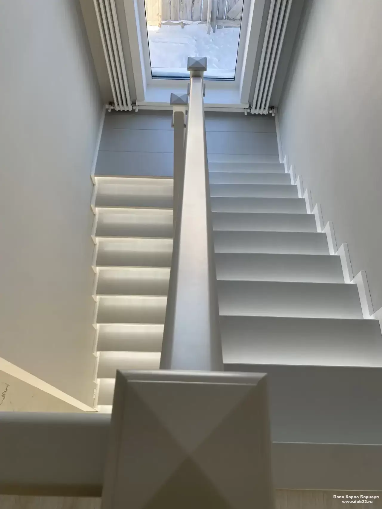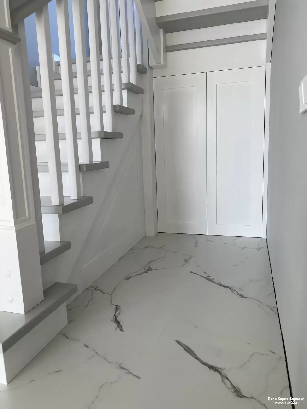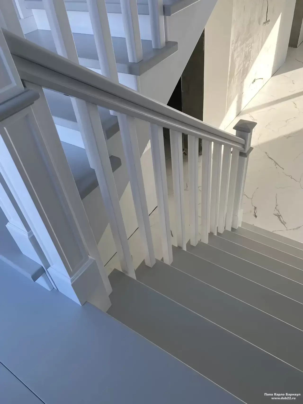 Интерьерная лестница из массива березы в двухцветном исполнении "под эмаль" была изготовлена мастерами компании PAPACARLO, доставлена и установлена в коттедже в г. Камень-на-Оби 18 января 2026 года.