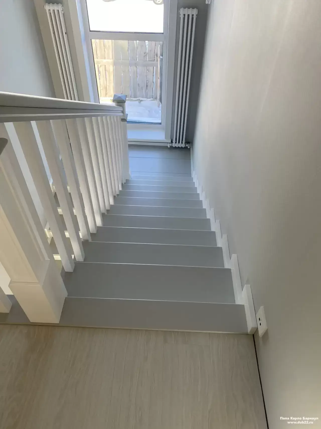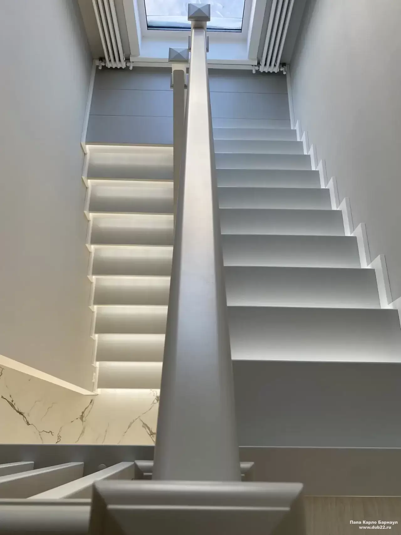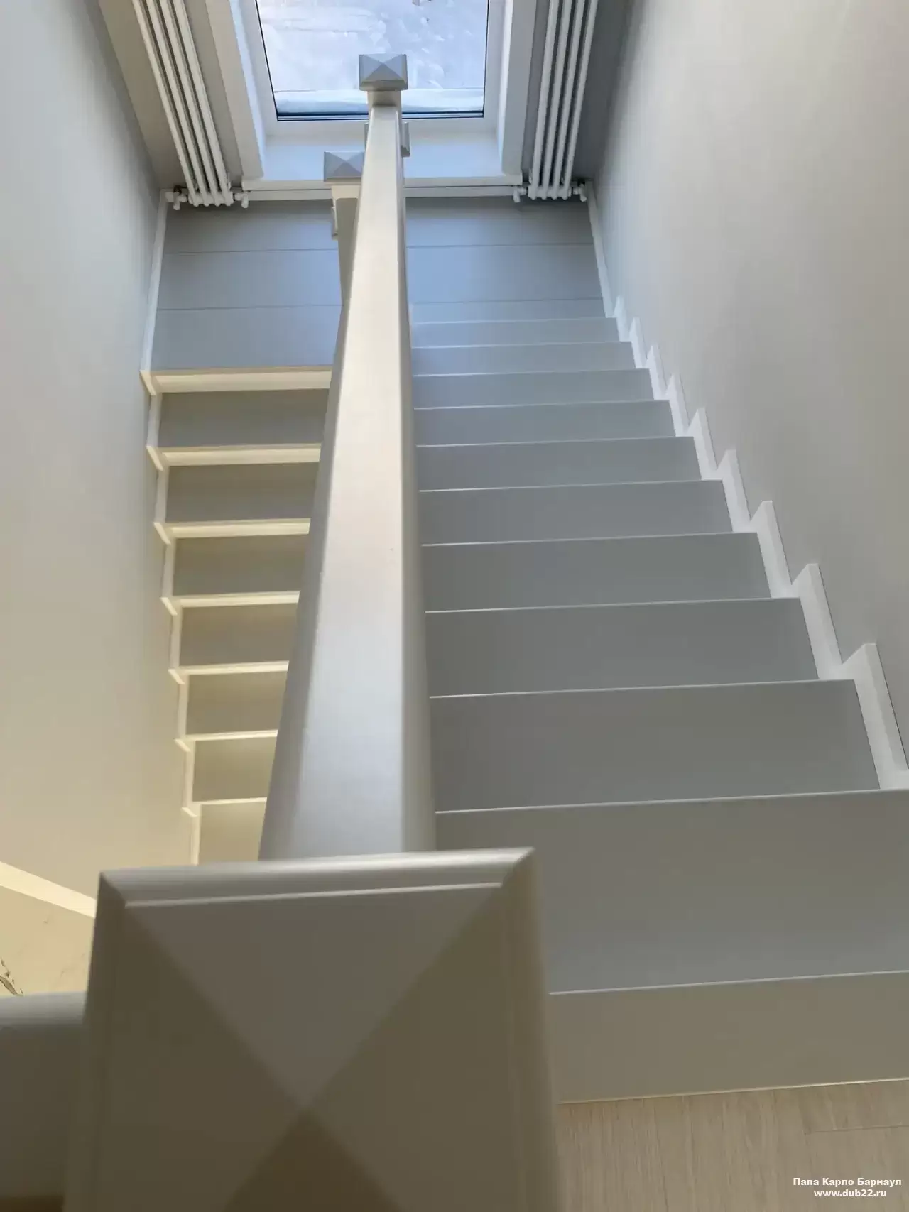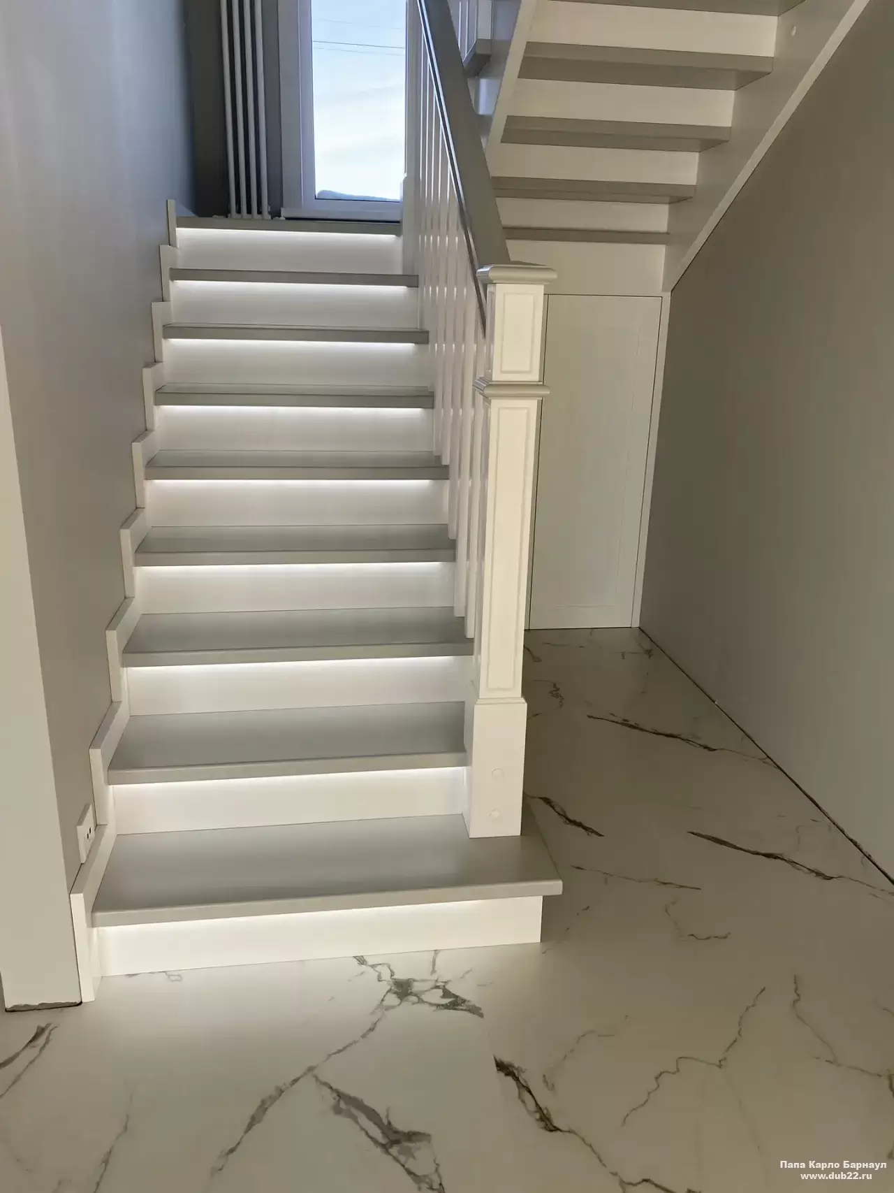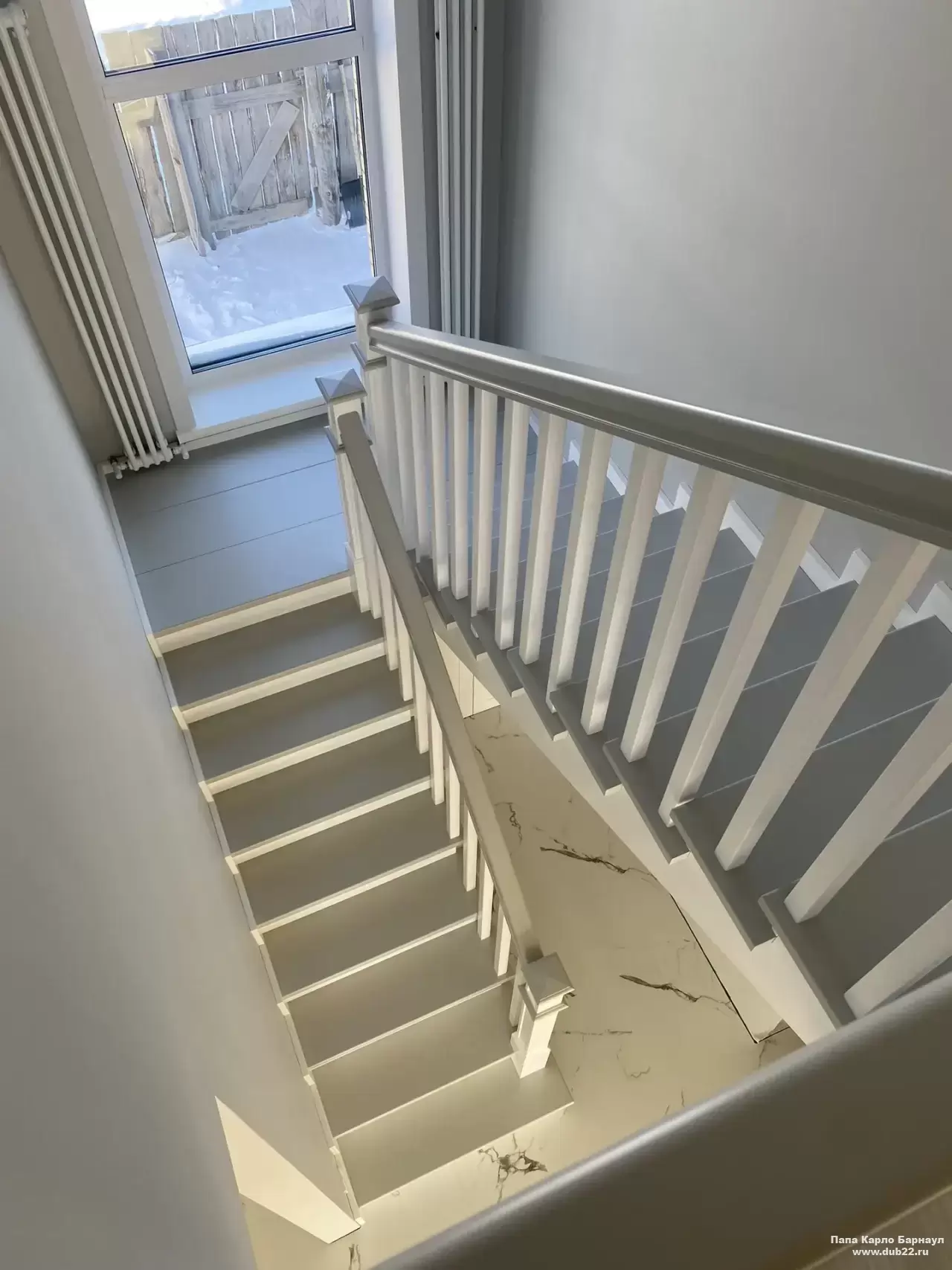 Интерьерная лестница из массива березы в двухцветном исполнении "под эмаль" была изготовлена мастерами компании PAPACARLO, доставлена и установлена в коттедже в г. Камень-на-Оби 18 января 2026 года.