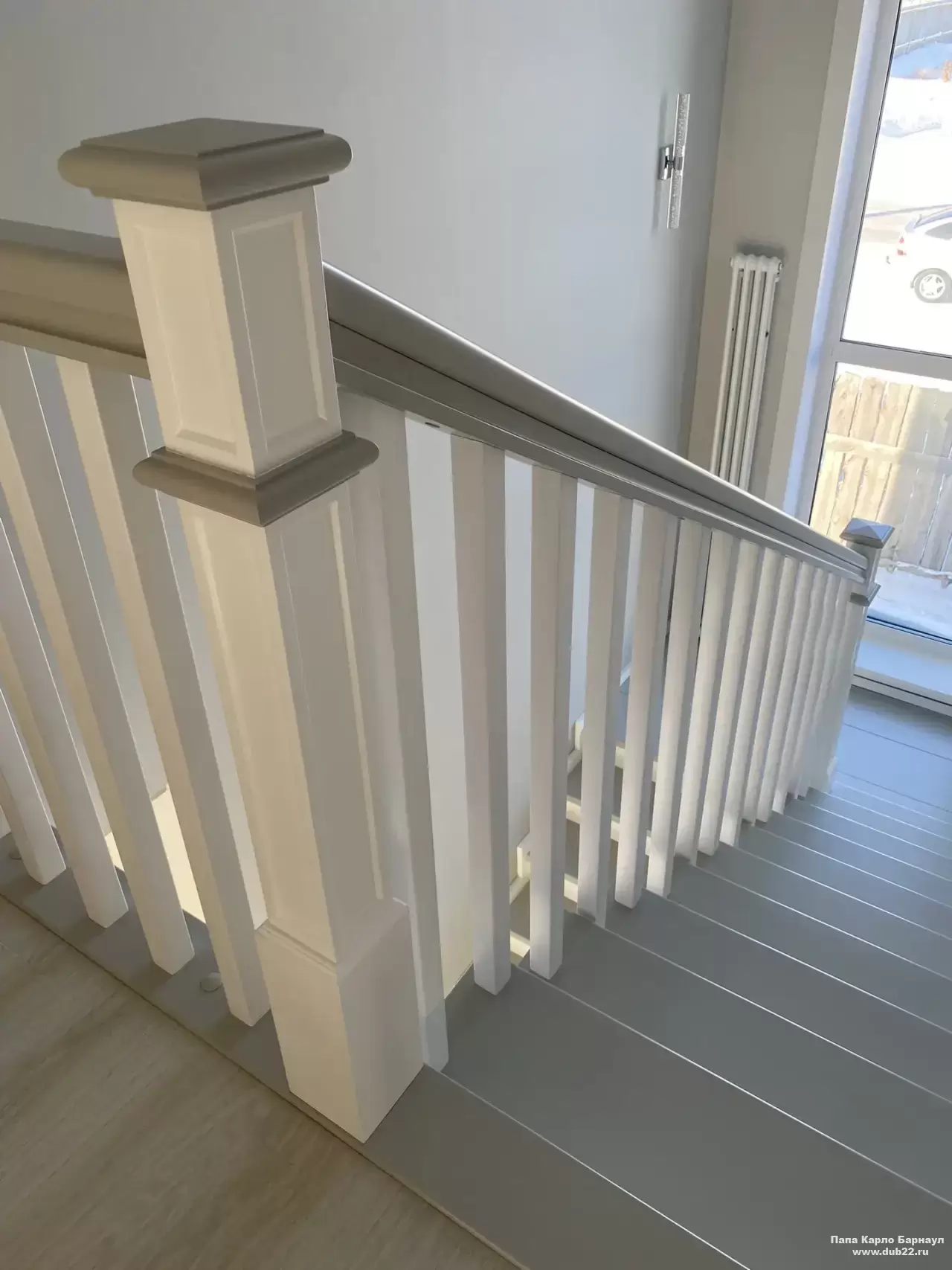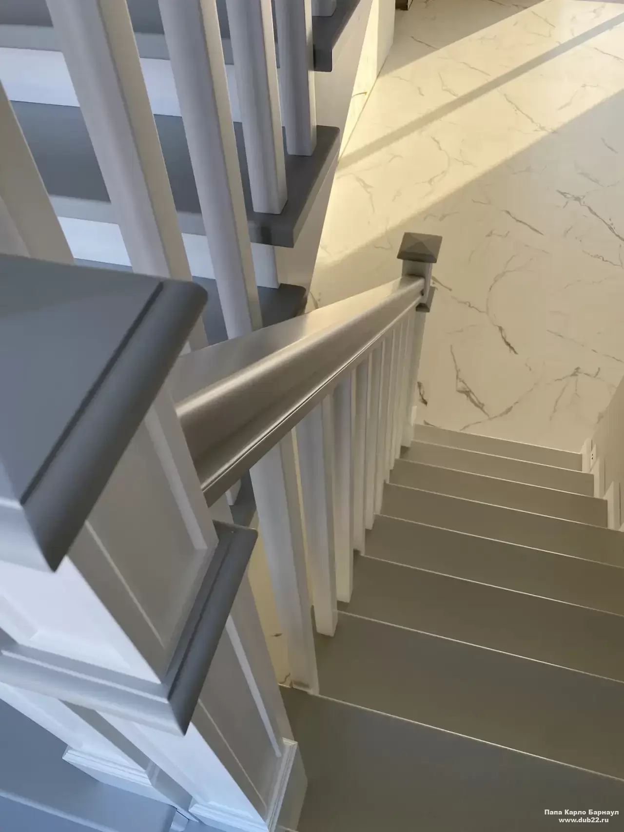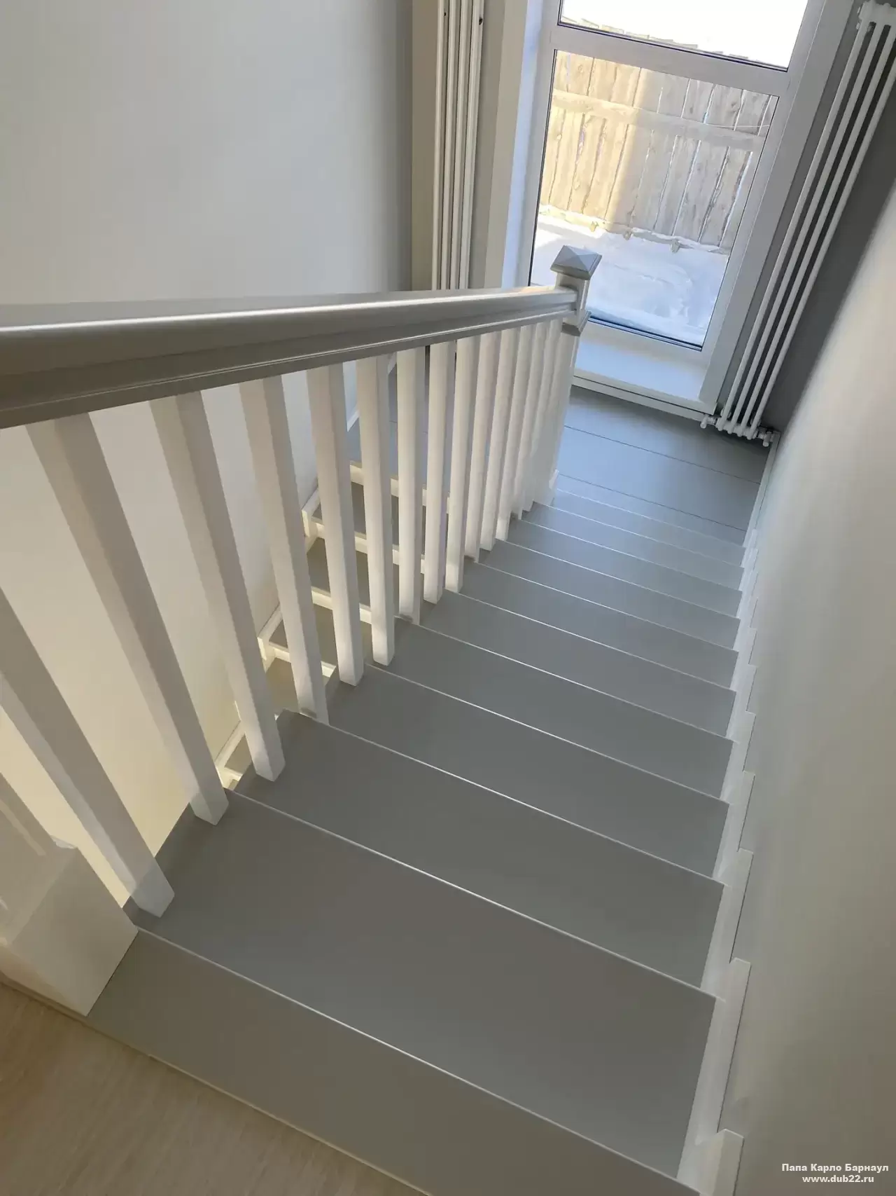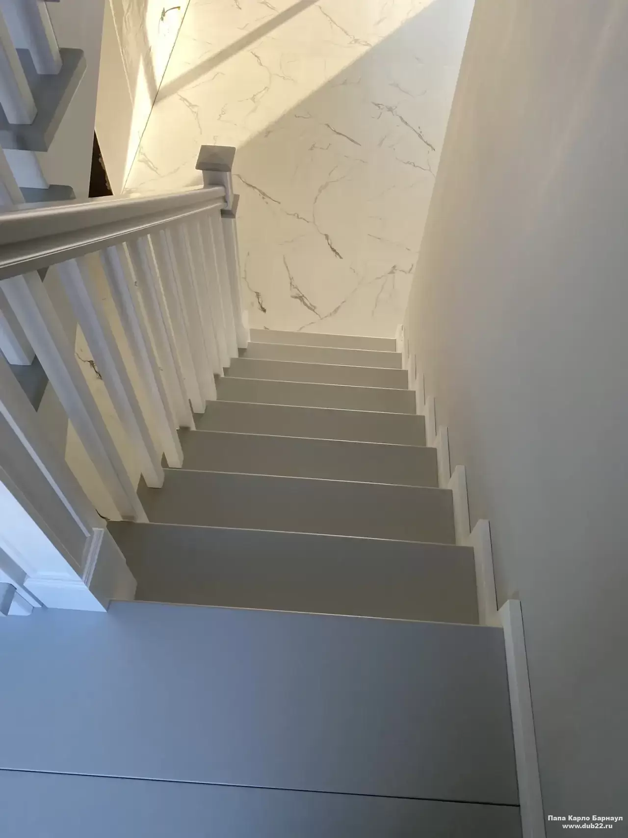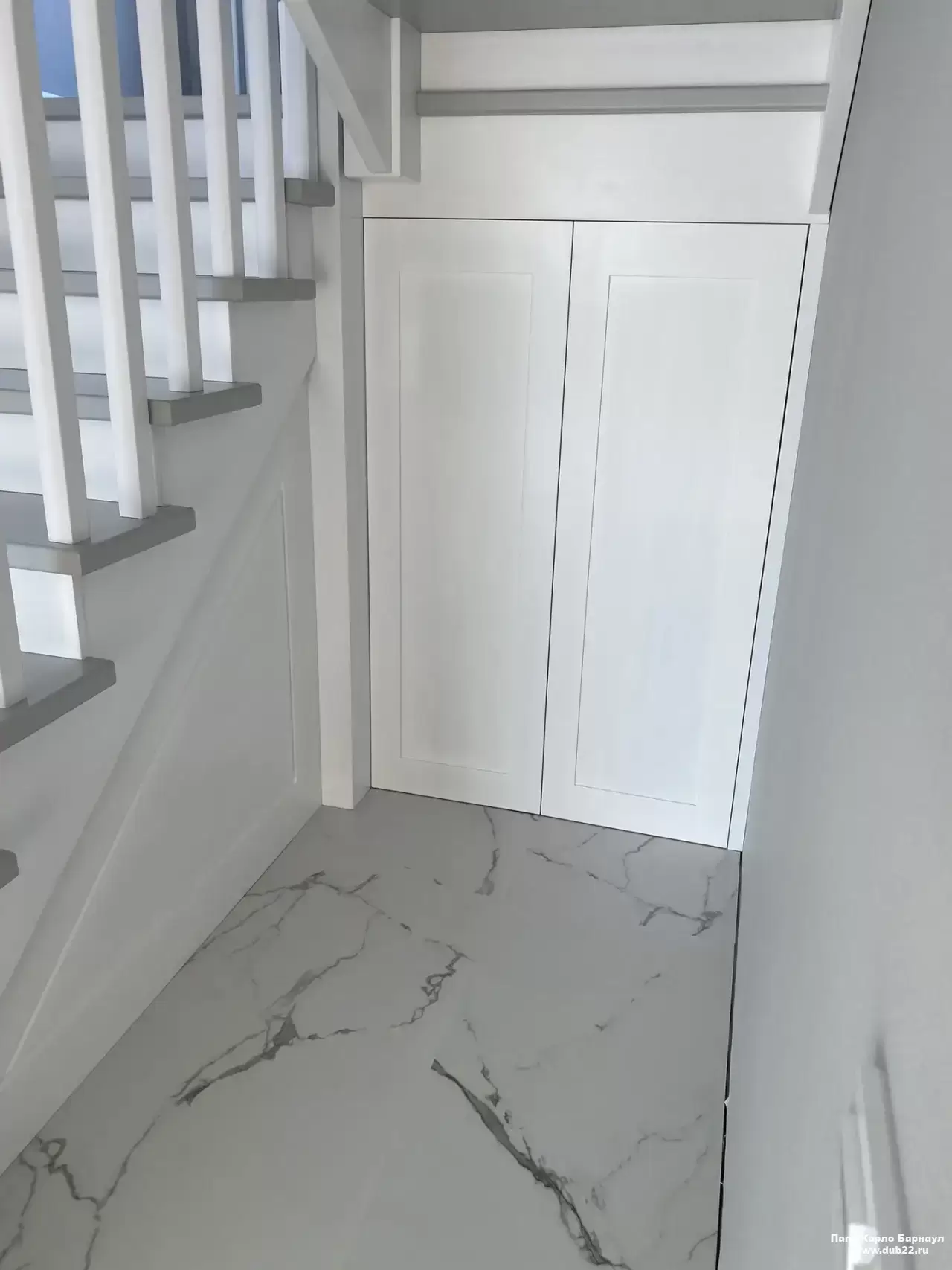 Интерьерная лестница из массива березы в двухцветном исполнении "под эмаль" была изготовлена мастерами компании PAPACARLO, доставлена и установлена в коттедже в г. Камень-на-Оби 18 января 2026 года.
