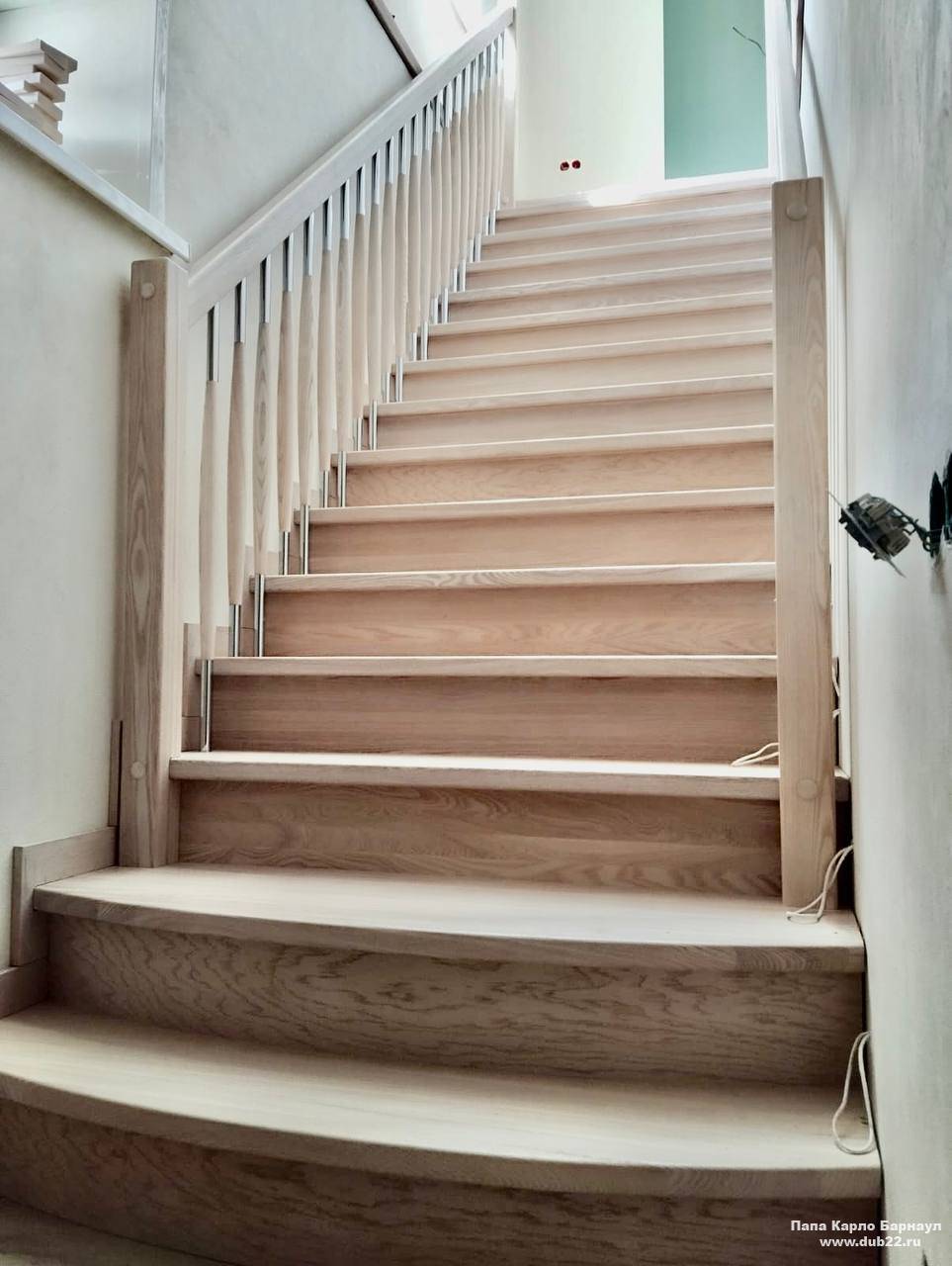 Лестница из выбеленного ясеня с установкой в пос. Солнечный
