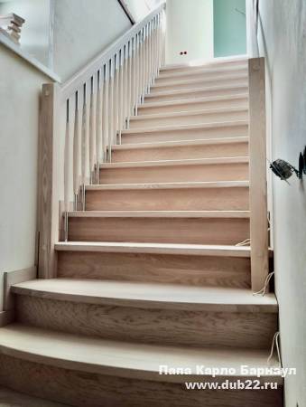 Лестница из массива ясеня с поворотом на 90 градусов. г. Усть-Каменогорск
